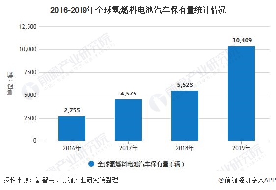 1、2019年全球氢燃料电池汽车销量增至7500辆