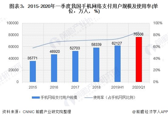 网络支付正成为境内企业走出国门、境外企业进入国内市场的活跃领域。截至2020年3月,我国网络支付用户规模达7.68亿,较2018年底增长1.68亿,占网民整体的85.0%;手机网络支付用户规模达7.65亿,较2018年底增长1.82亿,占手机网民的85.3%。