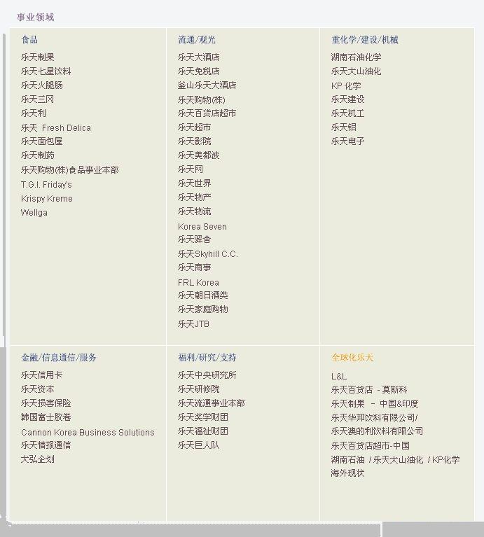可是刚出来的世界五百强名单里面韩国入围了13家企业,排名先后顺序是:三星电子、LG集团、SK集团、现代汽车公司、浦项制铁集团、GS控股集团、韩国电力公司、现代重工集团、朝华集团、三星人寿保险公司、韩国天然气公司、双龙炼油公司、斗山集团。没有乐天的影子啊……