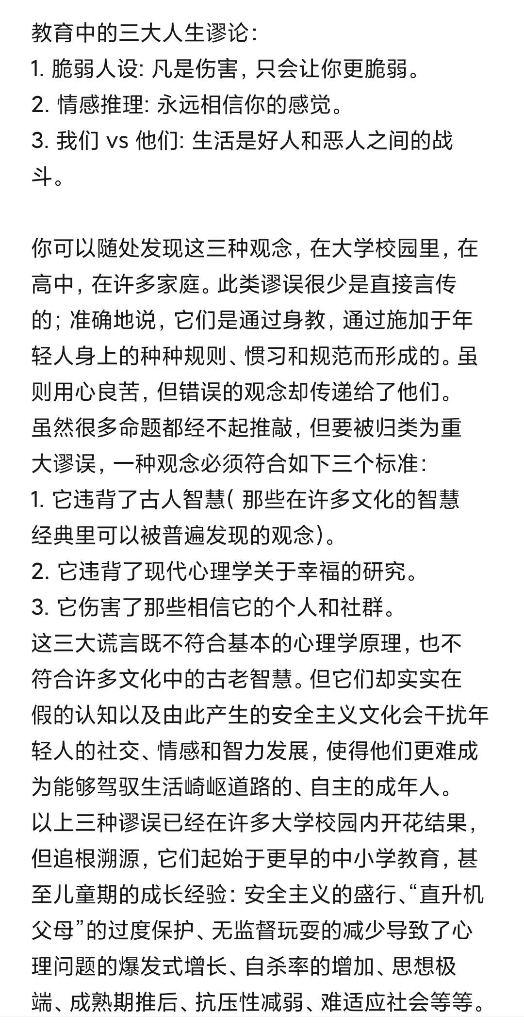 【学习笔记】教育中的三大人生谬论: 1. 脆弱人设: 凡是伤害,只会让你更脆弱 ...
