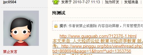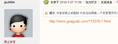 你发的属于纯广告贴,而且数量不止一个。禁止发言 有效期至 2010-8-3,再等几天吧。