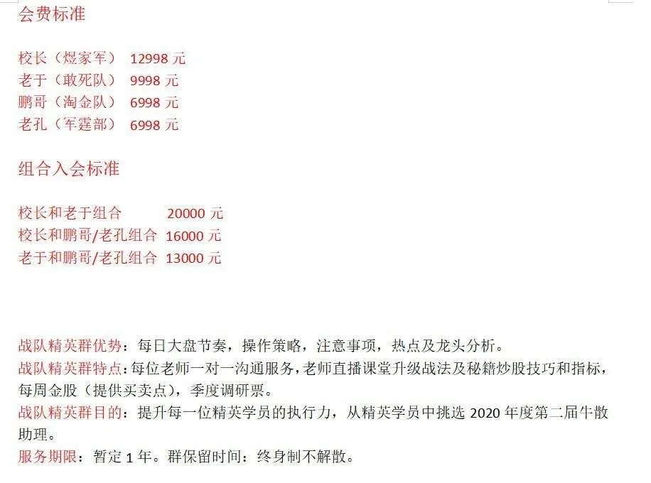 2、宣称有内幕消息,冲会员、买软件,教你炒股赚钱。只要你肯交钱,6998元-20000元不等,怎么买怎么卖,哪些股票能赚钱,都可以告诉你,交的多赚的多。当然,赚了是瞎蒙的,亏了是你没按股神的操作指示来,钱是不会退的。