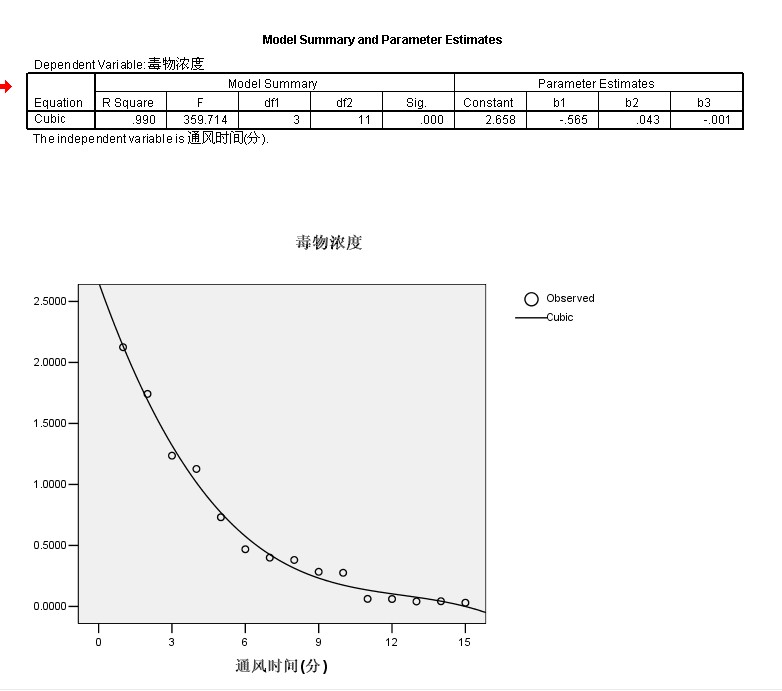 呵呵 curve.sav , cubic 拟合的简直完美,这数据编的真完美
