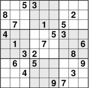 在这个九宫格中,81个格子中已给出23个数字,玩家必须在每一个小九宫格中,分别填上1至9的数字,让整个大九宫格每一列、每一行的数字都不重复。就像下棋那样,这个游戏需要玩家具备预先设想好几步棋子下法的能力。因卡拉教授表示,逻辑思考、耐心和谨慎是解开这个数独之谜的关键。