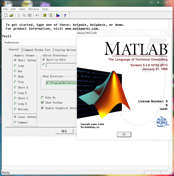唯一一个可用的免安装版MATLAB是5.3版,小巧玲珑,遗憾的是版本偏低了些,一般应用尚可.