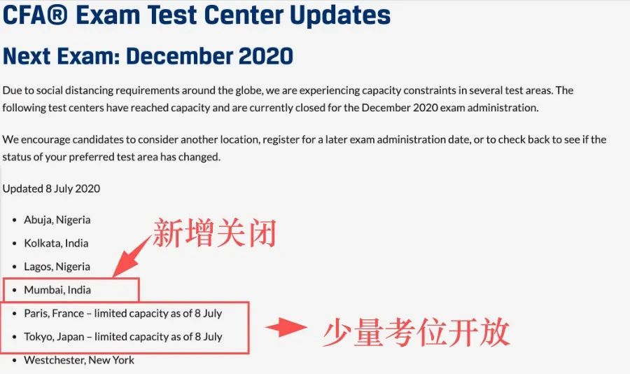 通过对比我们看到,协会新增关闭了孟买考场的预约。而东京和巴黎又有部分考位可预约!此处划重点!是有考位可预约可预约可预约,而不是满员哦!有部分小伙伴收到误导消息说,东京和巴黎是协会今日新增关闭的考场,实则不是,这两个考场早在6月1日协会就官宣,由于考场容量问题关闭预约了,不信的小伙伴可以对比一下上面两图哦!