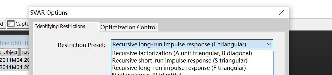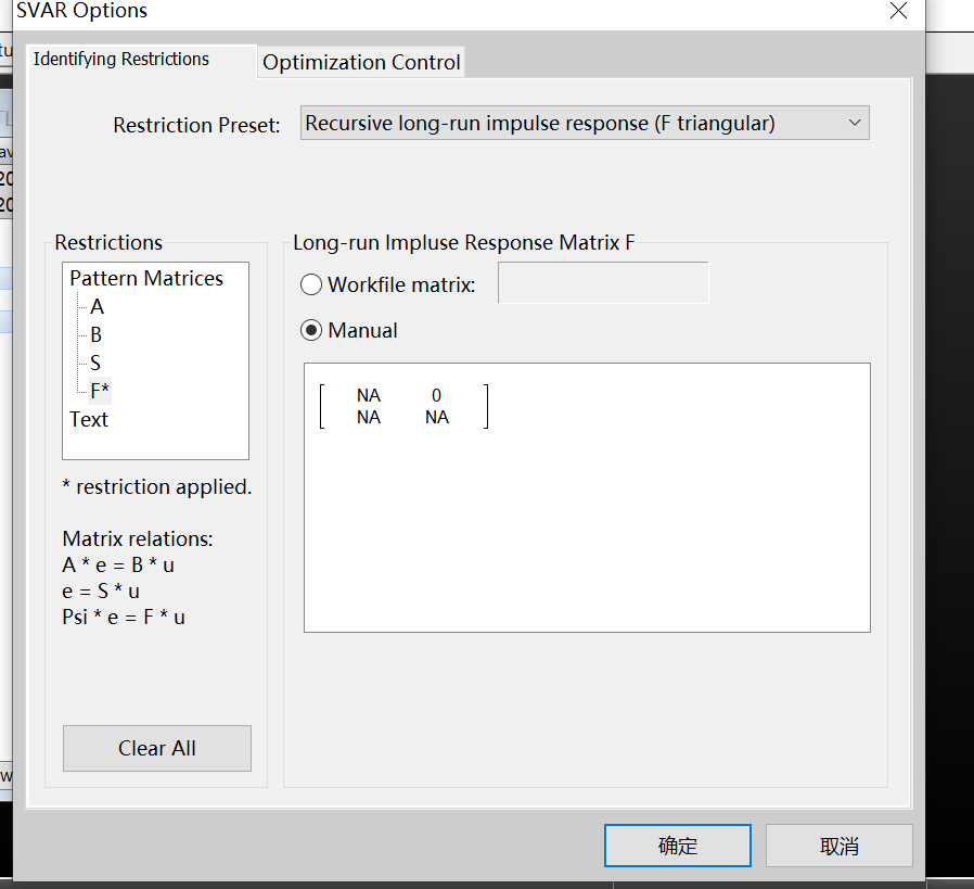 使用eviews10进行svar模型的建立时,上面这三种限制是什么意思呢,有什么区别?如果我要进行短期约束和长期约束,应该怎样设置?