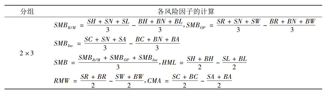 - 分别以营运利润率和投资风格代替账面市值比,重复上述步骤, 可把全体股票分成 SR、SN、SW、BR、BN、BW、SC、SN、SA、BC、BN、BA 这12个组合, 其中营运利润率前30%为盈利疲软组(W,weak),中间40%为盈利中等组(N,neural),后30%为盈利稳健组(R,robust);投资前30%为投资保守组(C,conservative),中间40%为投资中等组(N,neural),后30%为投资激进组(A,aggressive),接下来计算上述各组合每一期的市值加权平均收益率;
