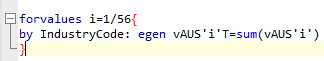 对投入产出表按行(产业类别)合并每个国家的数据,如何用stata实现,编写了如下程序,但是提示“not sorted",怎么解决,大神帮帮忙啊