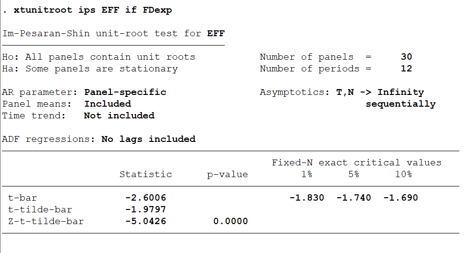 急求Stata面板单位根检验怎么得出每个解释变量的统计量谢谢!