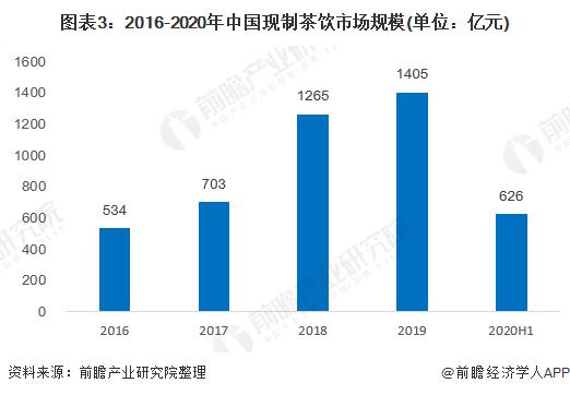 2020年上半年,现制茶饮市场规模为626亿元左右。