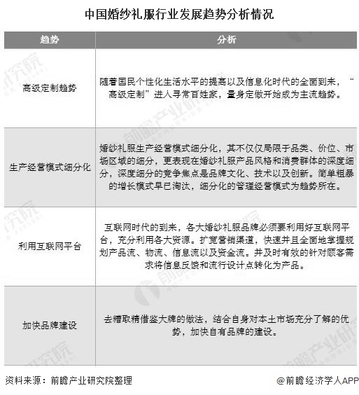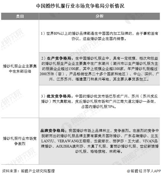 中国婚纱礼服行业深度调研与投资战略规划分析报告》,同时前瞻产业研究院提供产业大数据、产业规划、产业申报、产业园区规划、产业招商引资等解决方案。