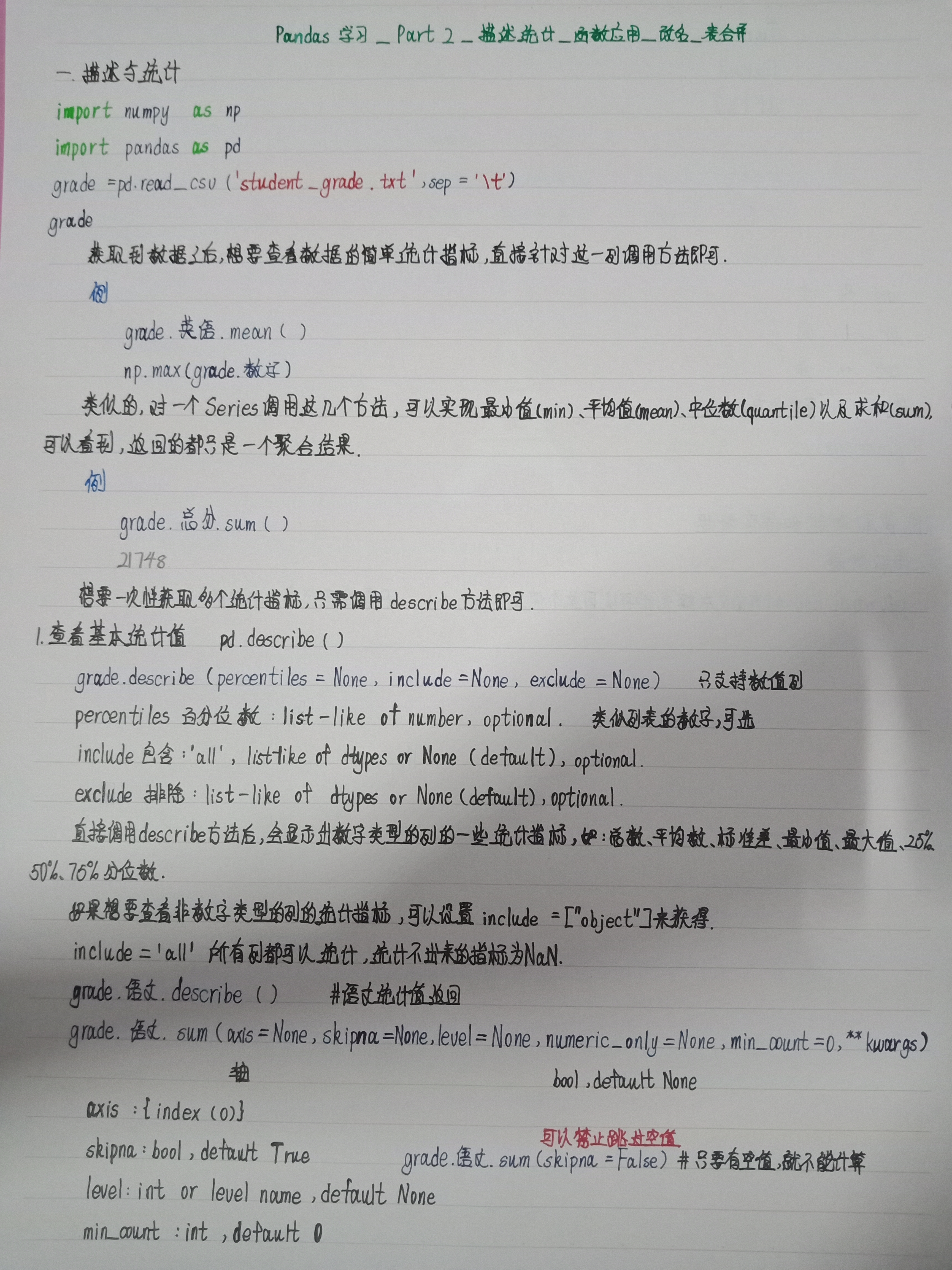【学习笔记】7.22打卡 Pandas学习part2