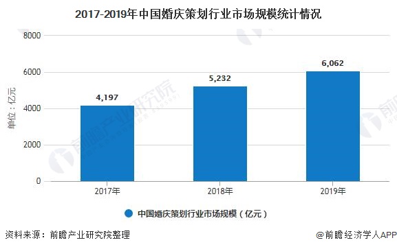 4、2019年中国婚庆策划行业市场规模突破6000亿元