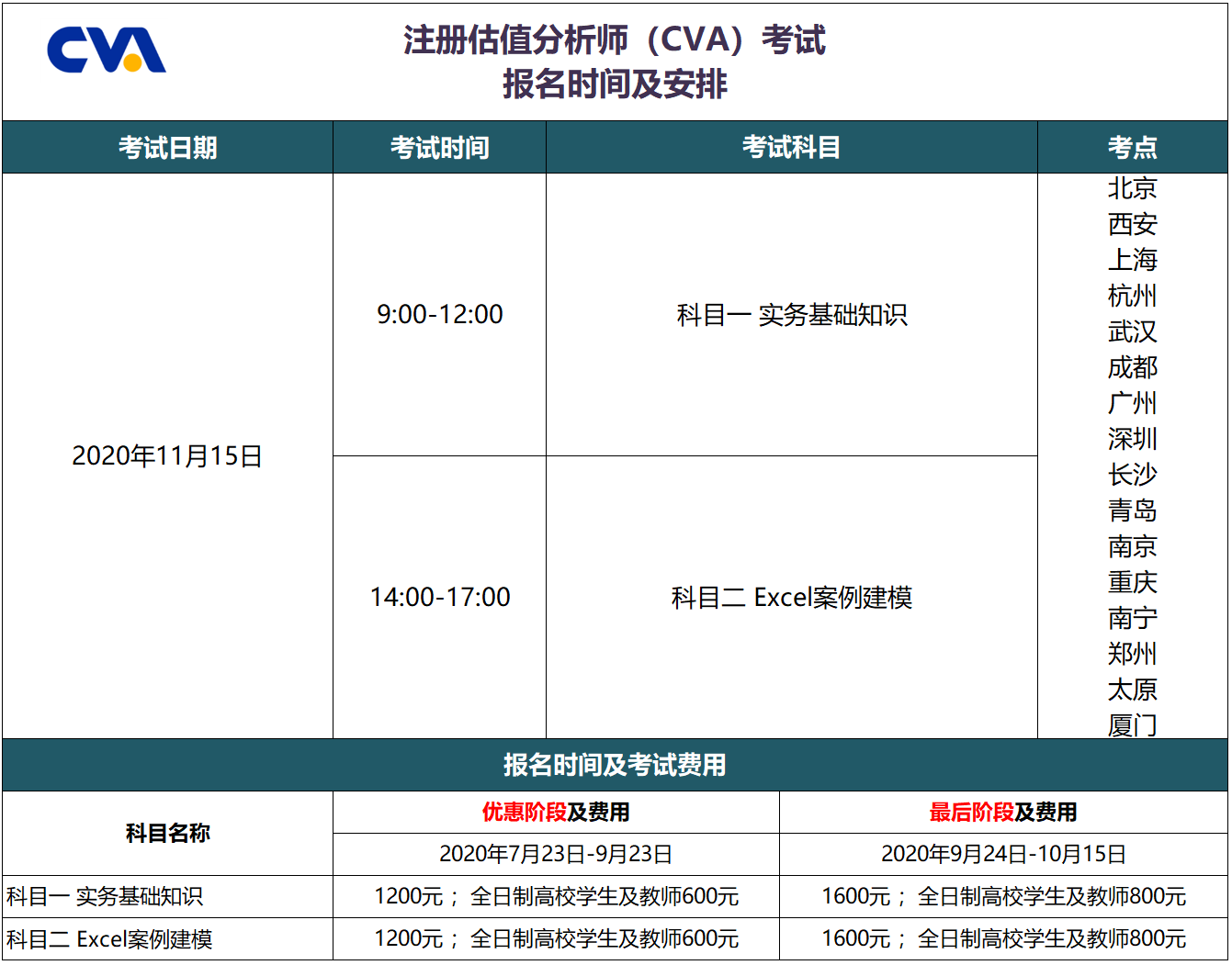 本次CVA考试时间为2020年11月15日