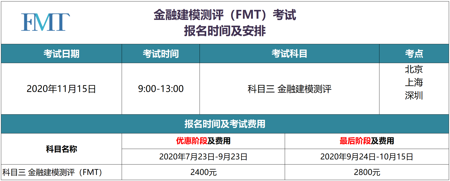 本次FMT考试时间为2020年11月15日
