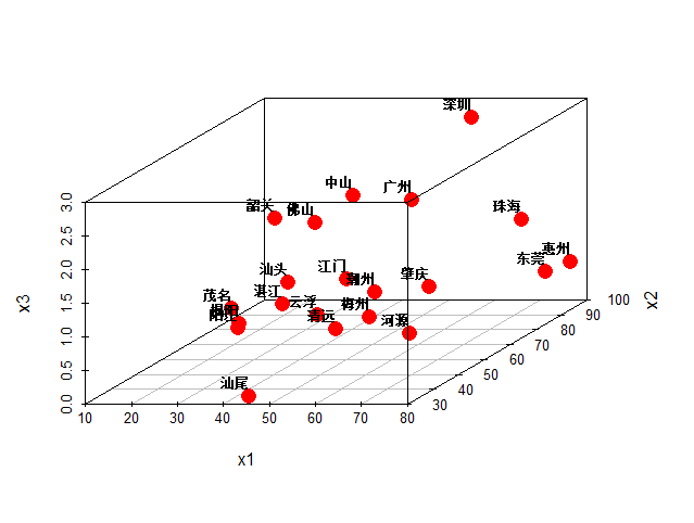 我用scatterplot3d函数作了三维散点图后,没有办法把每个点的标签加上。