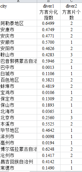 中国方言多样性指数
