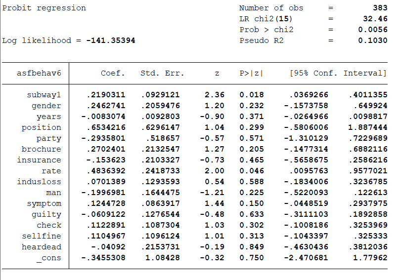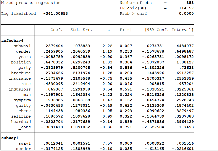 cmp(asfbehav6=subway1+控制变量)(subway1=sway1 +控制变量),ind($cmp_probit $cmp_cont )