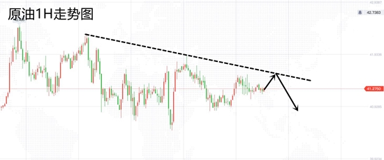 原油从位置来看,价格仍然维持在1小时图下跌趋势线的下方,随着价格的震荡偏弱。原油走软的可能性增加。因此,日内价格反抽后继续逢高参与空头。