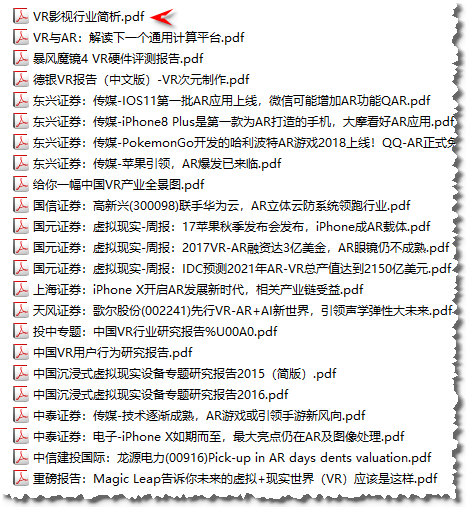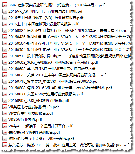我自己收集整理的 VR AR MR行业调研报告、行业数据:计算机、虚拟现实、传媒、电子行业