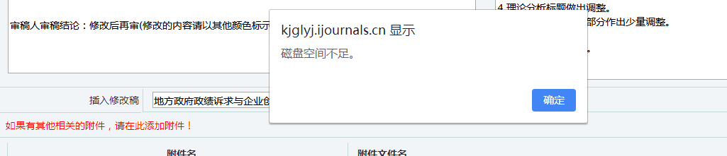 上传退修稿显示磁盘空间不足,请问谁碰到过这种情况啊?该怎么解决,谢谢各位。