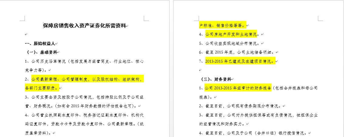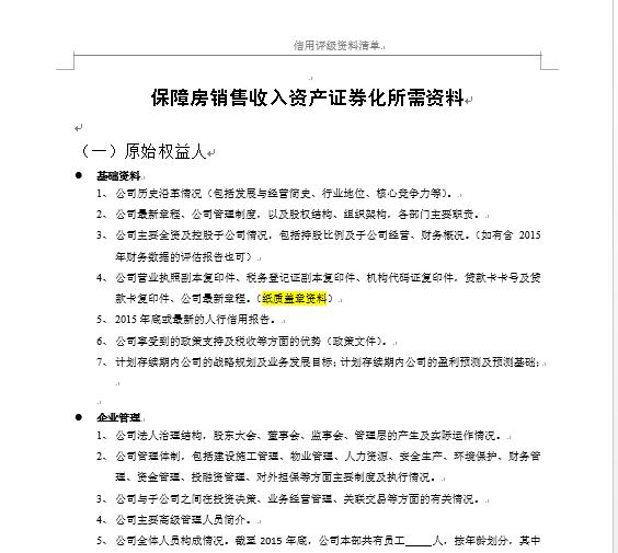 保障房销售收入资产证券化所需资料尽调材料.rar
