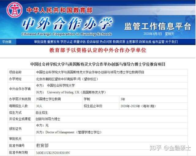 该中外合作办学博士项目为院校自主招生,毕业可获得英国斯特灵大学博士学位,教育部留服中心可作学历学位认证,等同于双证博士。