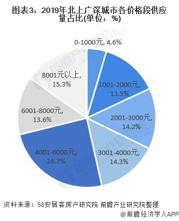 而租房价格相较于购房价格却可爱得多,重点城市房屋租赁价格在3000元以下的房源占比超过一半,而房屋租赁价格在4000元以下的房源占比达到67.9%。在北上广深城市,房屋租赁价格在4000元以下的房源占比接近一半。