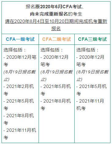 2020年12月CFA考试(最后一次笔考)的日期安排为:
