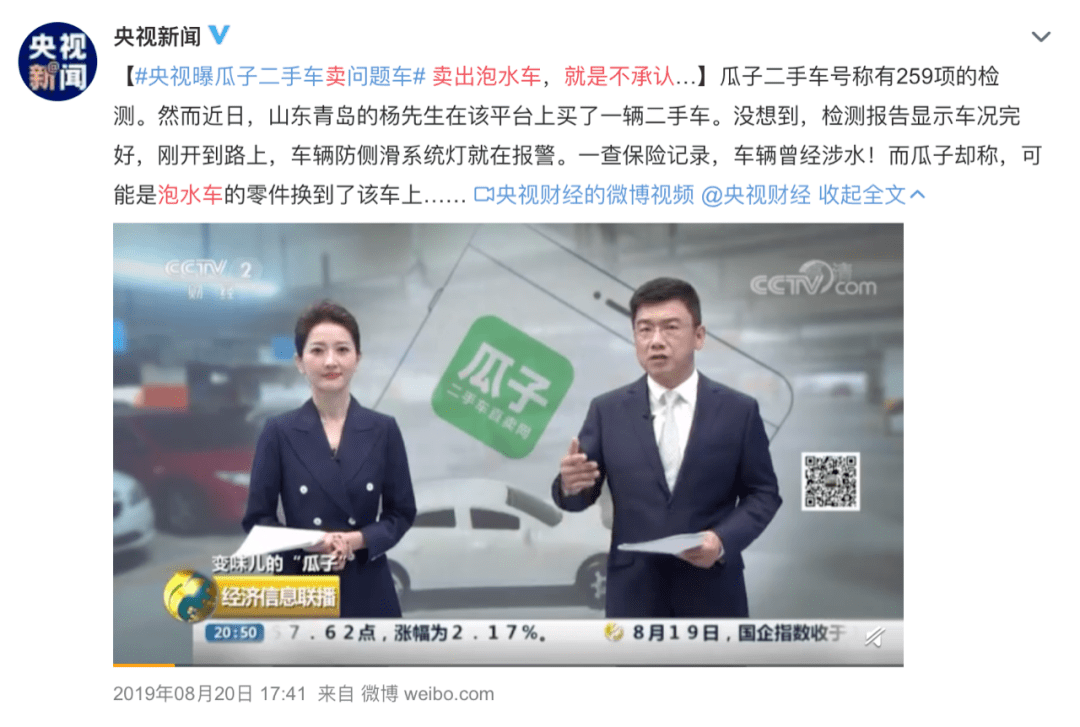 事实上,瓜子二手车的这一问题早已引起媒体关注。据央视2019年8月报道,在一个近500人的维权QQ群内,很多消费者有着类似的遭遇,或买到的二手车有重大事故记录,或实际到手的车型与标注不相符。