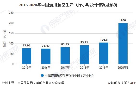 而在通航业飞行小时方面,2019年,全行业完成通用航空生产飞行106.50万小时,同比增长13.6%。但据《通用航空“十三五”发展规划》目标显示,至2020年,我国通用机场飞行小时将达200万小时。