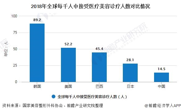 与其他发达国家相比,中国的医疗美容服务渗透率仍然很低,2018年每千人中接受医疗美容诊疗的人数仅为14.5人,而美国则为52.2人,韩国为89.2人,因而我国医疗美容行业具有巨大的发展空间。尤其是低级别城市的渗透率的提升,会极大的提高中国市场的整体渗透率。