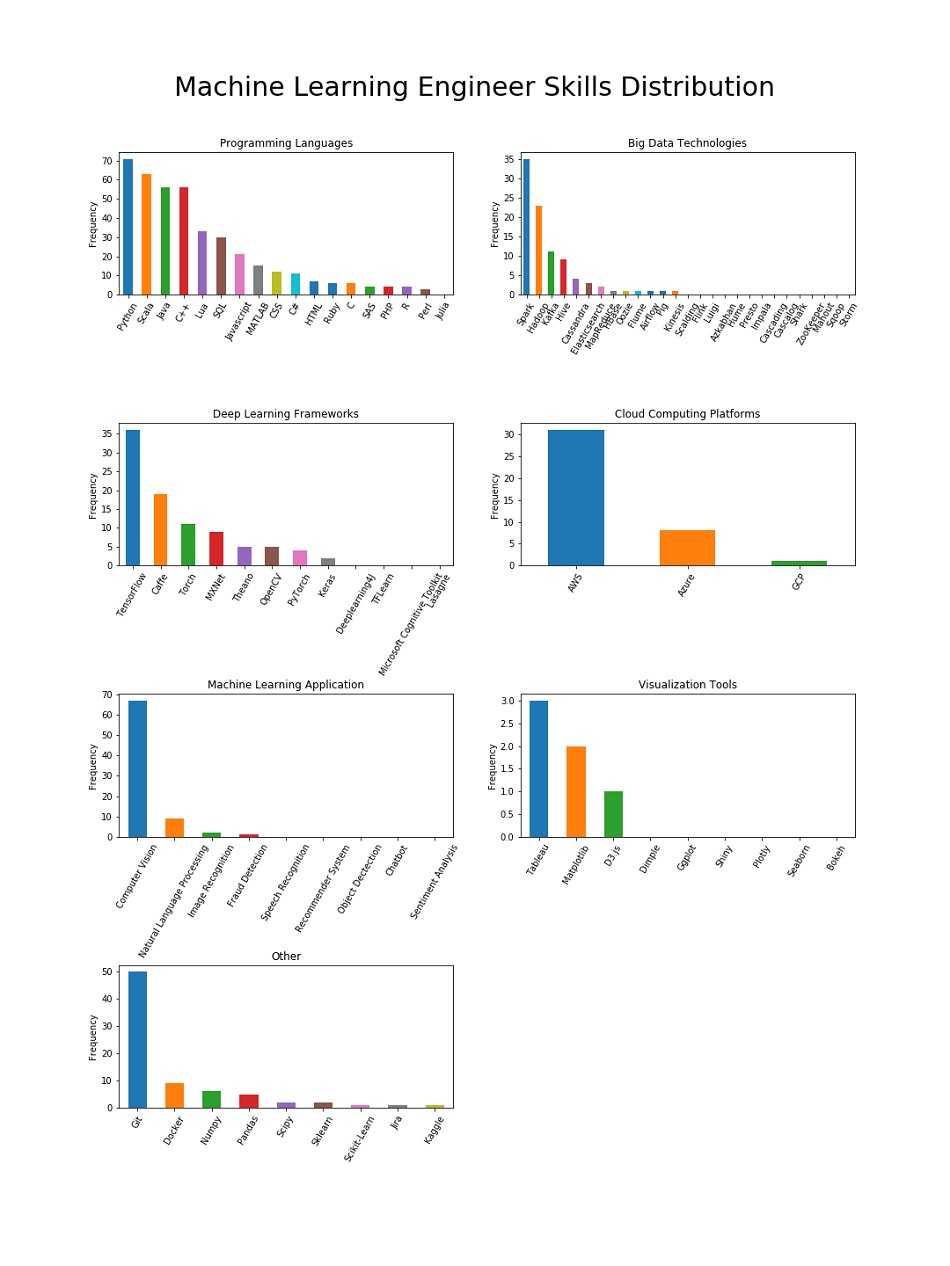 此外,TensorFlow在深度学习领域绝对占据主导地位。尽管Keras作为高级深度学习框架在数据科学家中非常受欢迎,但对于机器学习工程师职位,很少要求要掌握Keras,这可能表明机器学习从业者大多使用较低级别的框架,如TensorFlow。