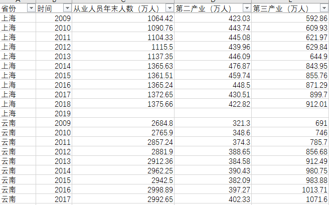 xinxiaohua 发表于 2020-8-14 11:11 从统计年鉴上整理的,行业分组只整理了二三行产业数据,部分省份部分年份有缺失。 下图是样图。