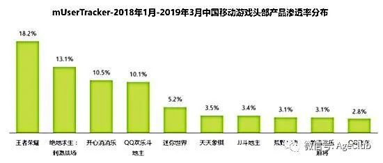 在艾瑞咨询统计的2018年1月—2019年3月渗透率前十游戏,腾讯旗下棋牌游戏《QQ欢乐斗地主》、《天天象棋》、《腾讯欢乐麻将》都赫然上榜,分析这些游戏用户画像可以发现,中老年用户占比都非常高。