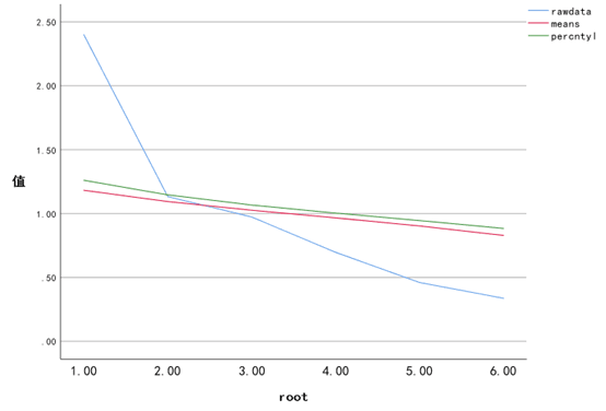 在输出结果中,新手可以直接查看最底部的建议提取因子数量,此处建议提取1个。如果需要更为详细的结果,则应该查看并报告原始数据与模拟数据的特征值情况。