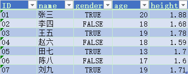 'name':['张三','李四','王五','赵六','田七','陈八','刘九'],