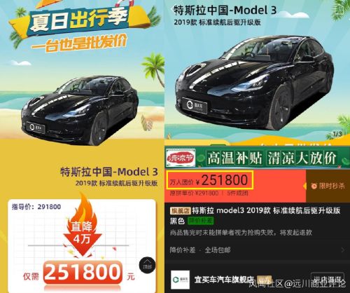 拼多多和特斯拉的这次“合作”始于一个月前。7月21日,拼多多联合“宜买车”店铺推出了一场特斯拉万人团购活动。虽然只有5个名额,但因为价格比特斯拉官网优惠好几万,吸引了很多人的关注。