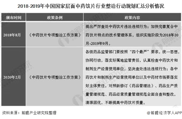 因此,我国针对这些问题也出台了相关政策推进行业往规范化、标准化方向发展,如出台《全国医疗机构中药饮片管理专项检查方案》,不断完善医疗机构中药饮片管理的有效措施和长效机制。