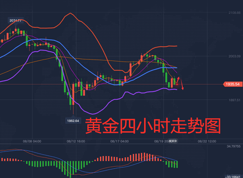黄金走势分析:黄金早盘已经提示日内会有反弹,上方关注1960区域的压力,早盘行情强势反弹一波,但是最终遇阻1955后回落,日线级别的宽幅震荡走势,2075跌至1860第一波,随后行情反弹2015,现在开启第二波下跌,并且一开始下跌力度就非常强势,虽然短线行情在1925附近获得支撑,也是4小时布林下轨的支撑,但是黄金跌势调整没有改变,最终调整震荡后还将继续下跌。
