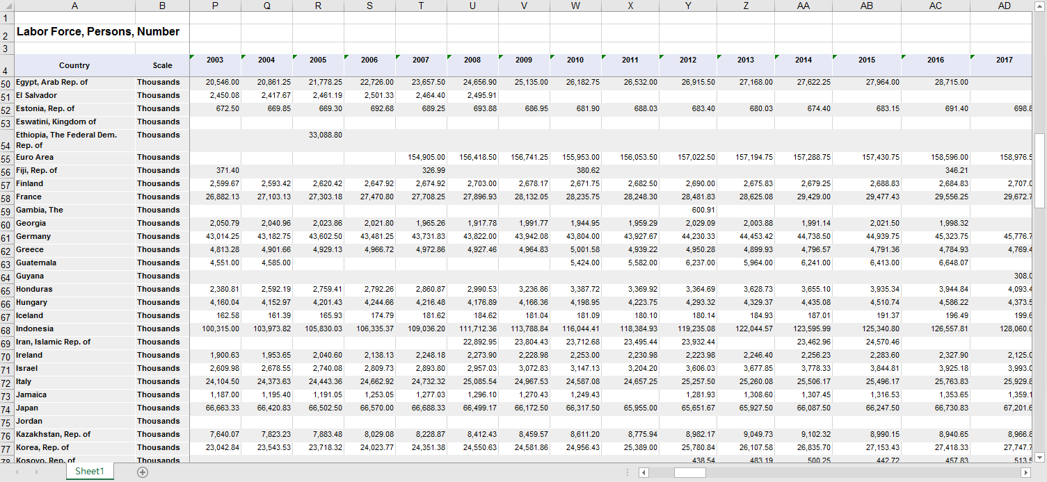 全球世界各主要国家地区人口和就业统计:人口数(2003-2019)