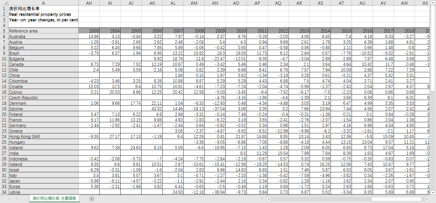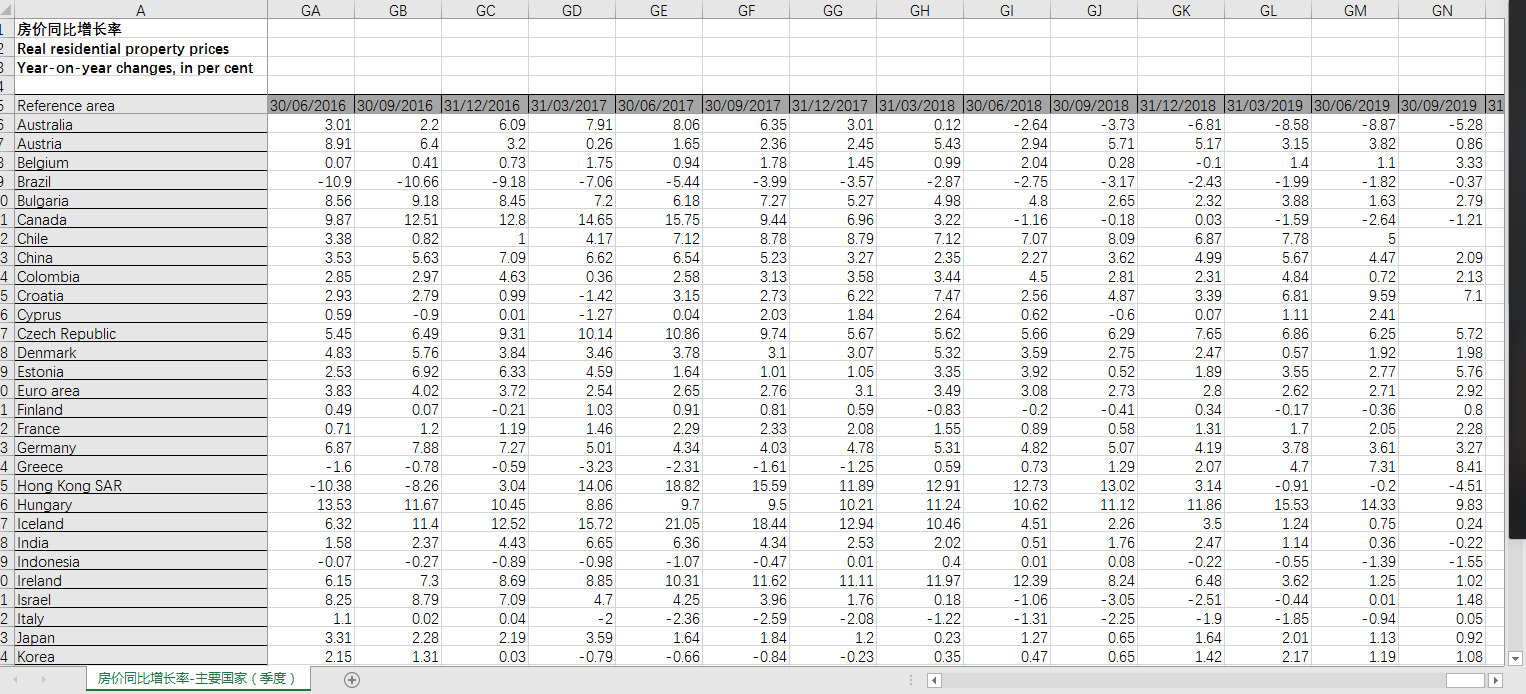 1971-2019年 主要国家 房地产价格 房价同比增长率(年度、季度)