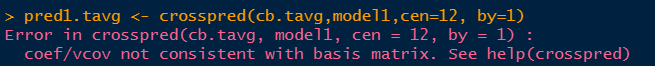 我最近在自学dlnm模型,但是crosspred老是有错,在网上也没有查到解决方式,求大神指教,万分感谢!
