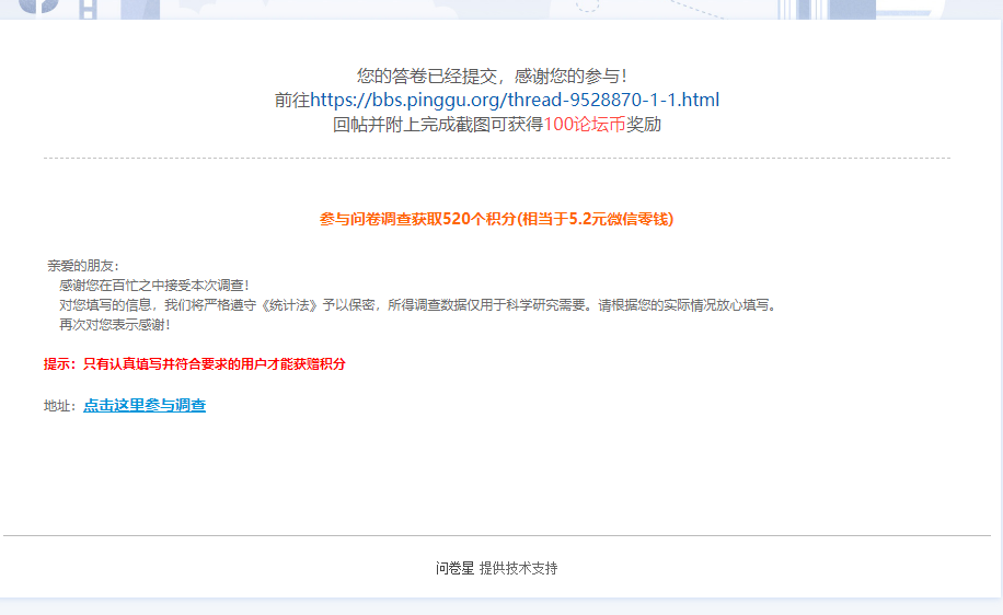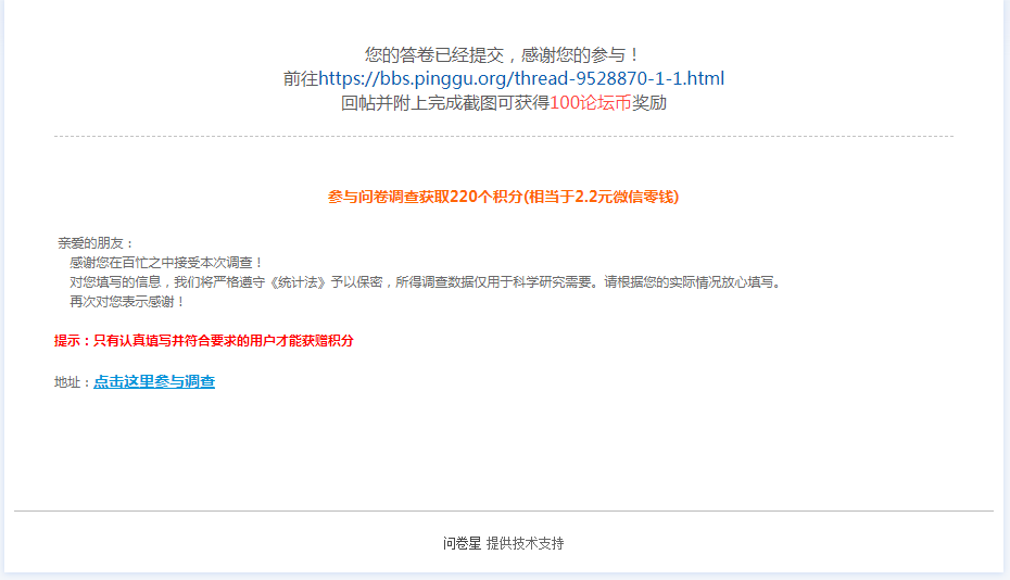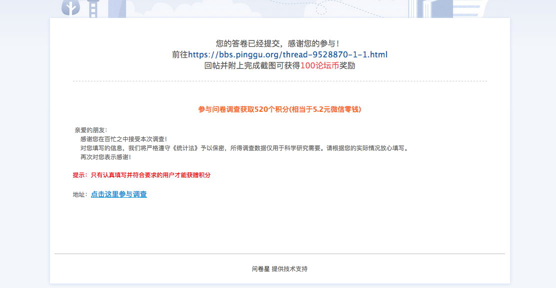 问卷填写完成