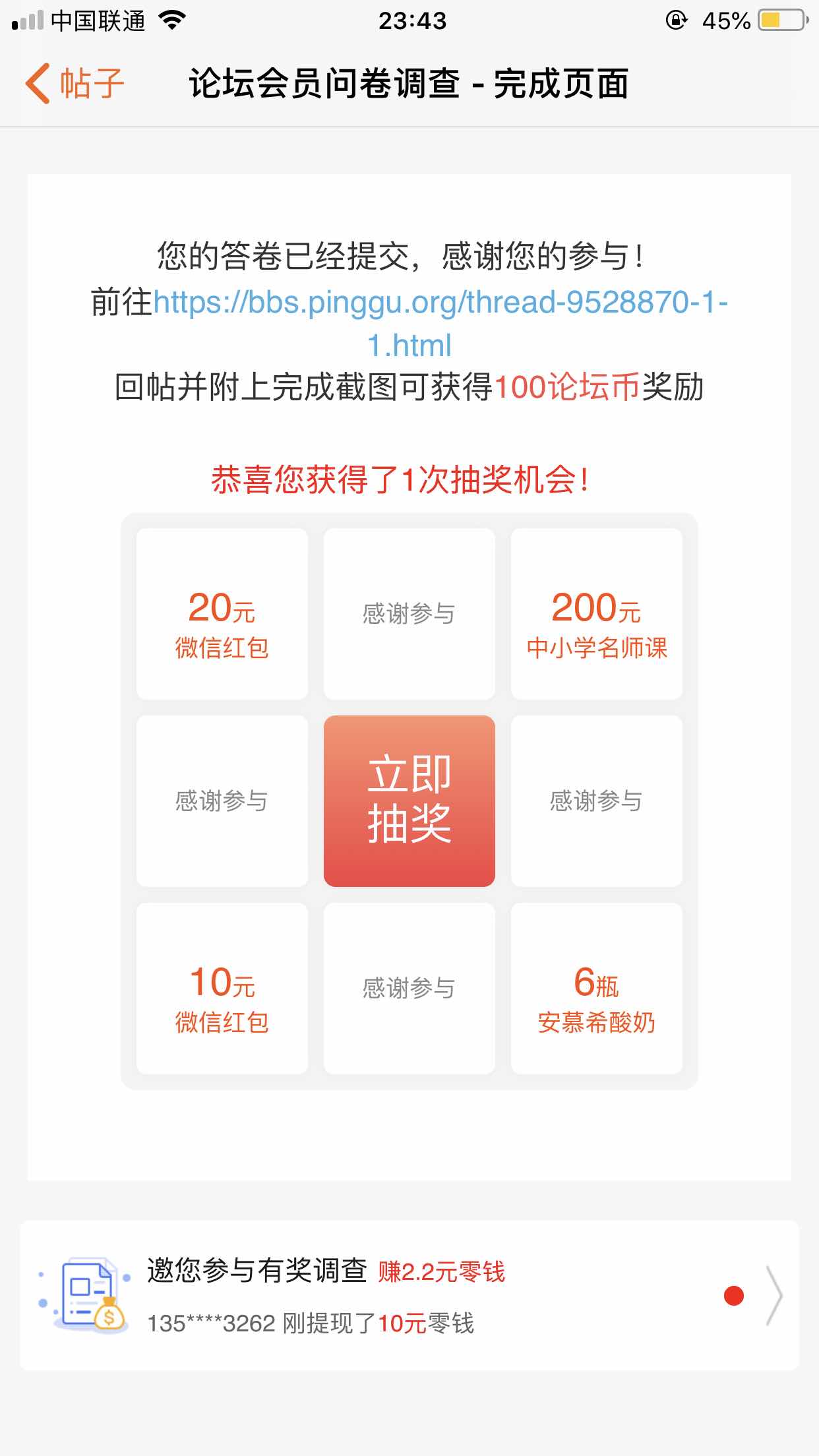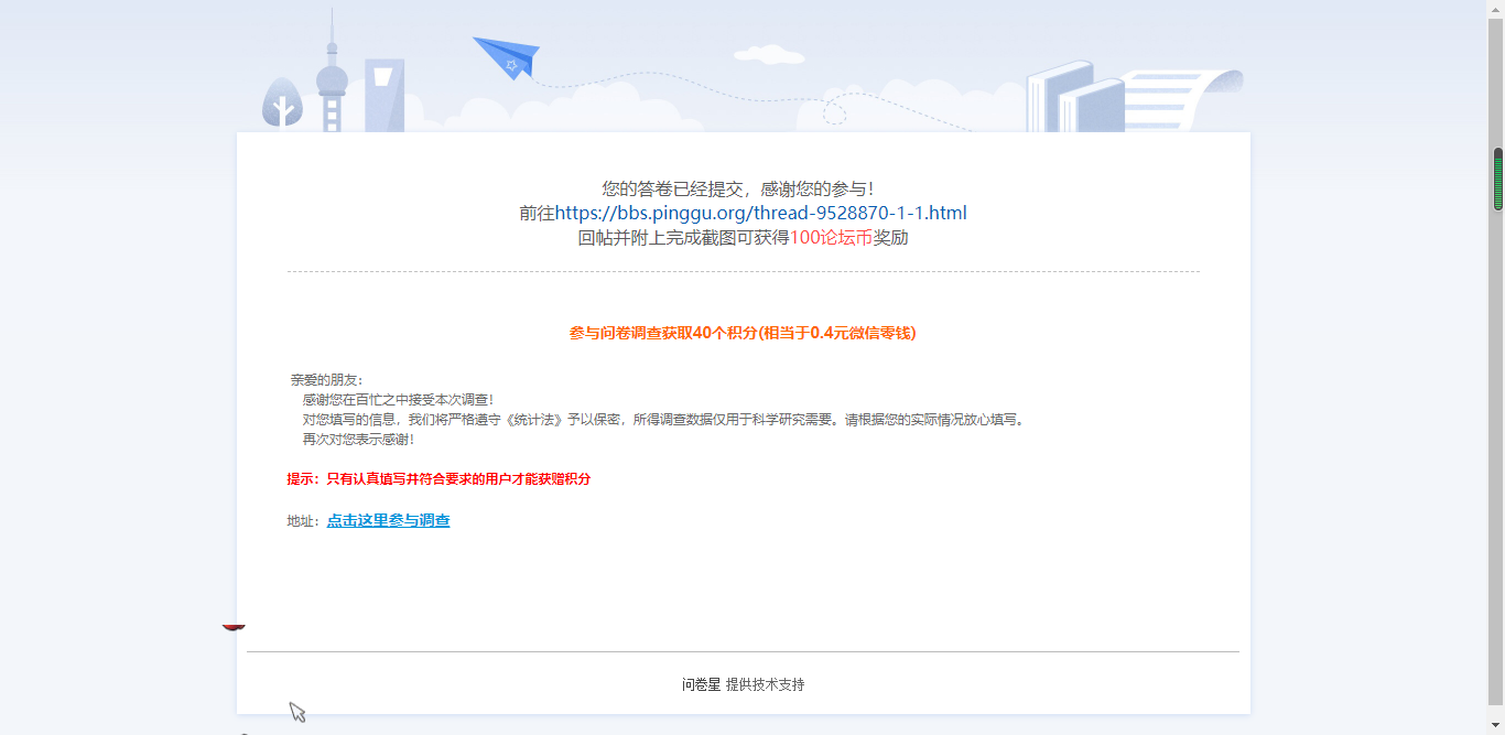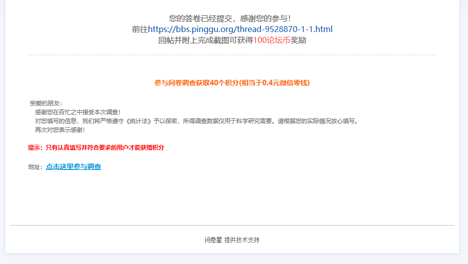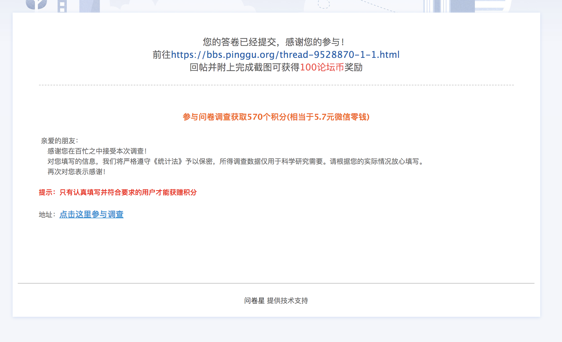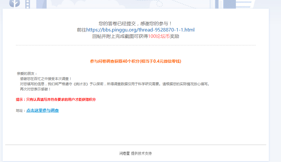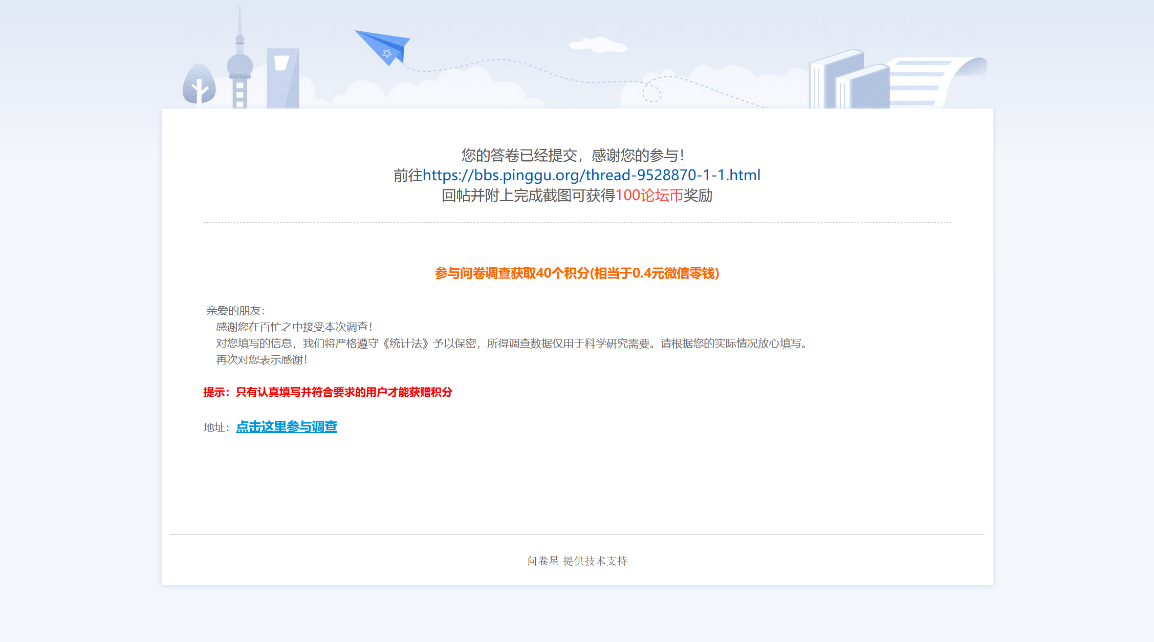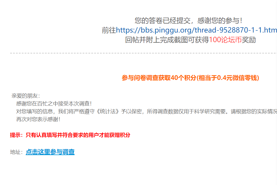 参与问卷调查获取40个积分(相当于0.4元微信零钱)