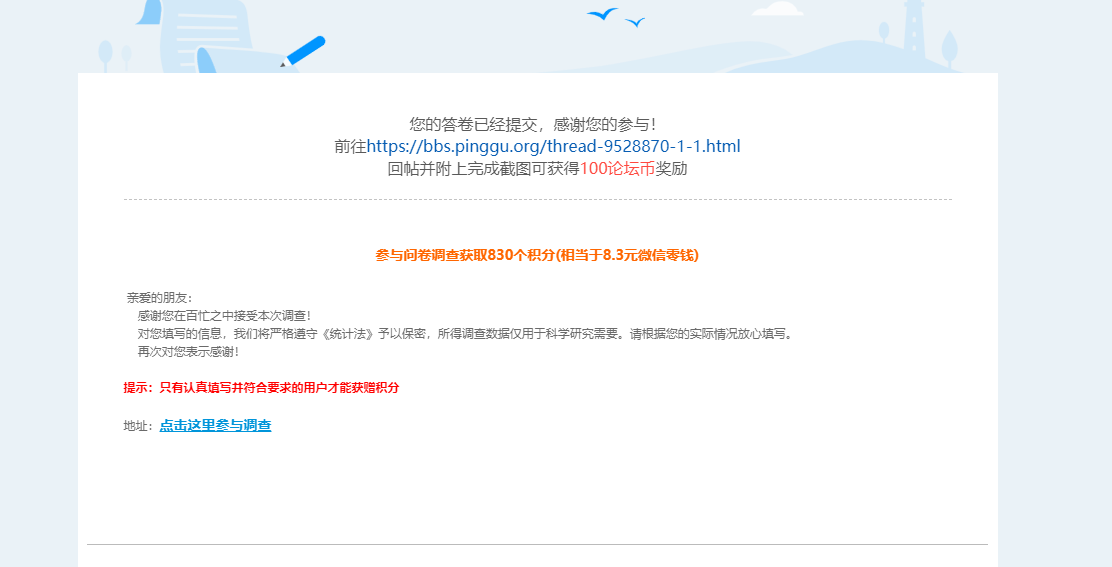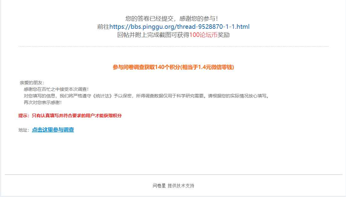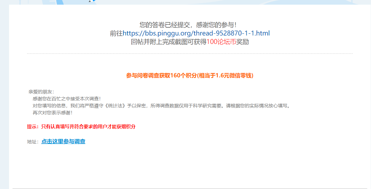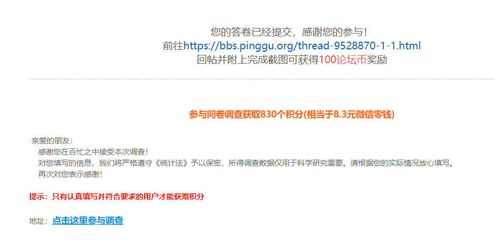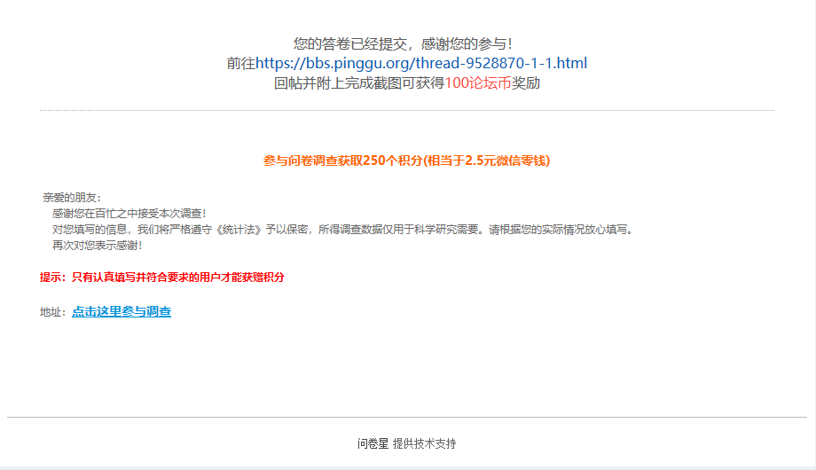逐梦的太阳 发表于 2020-8-25 17:41 这是一次关于论坛发起的小调查,将耽误您几分钟填写问卷,希望您能够抽出少许时间完成这份问卷调查。我们 ...
