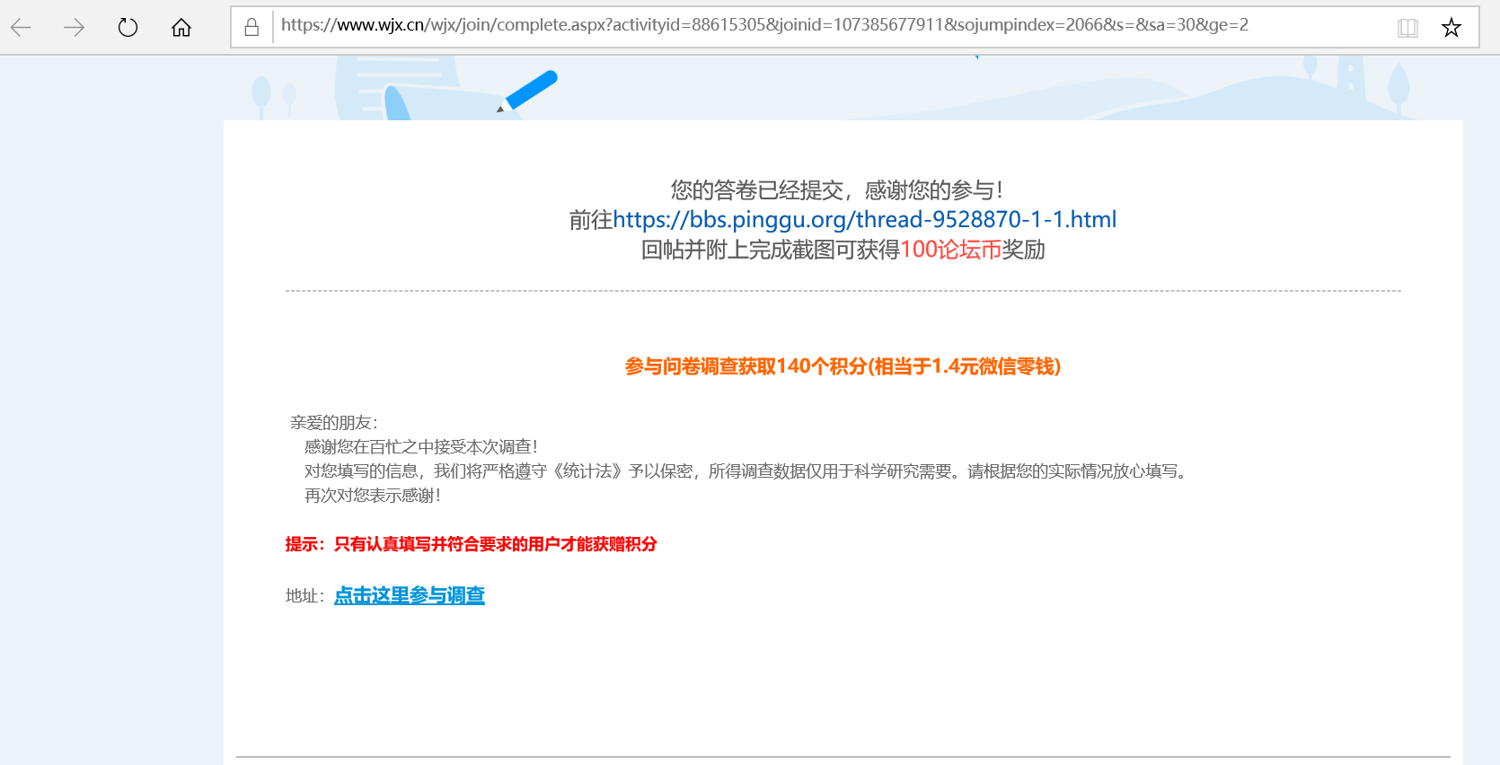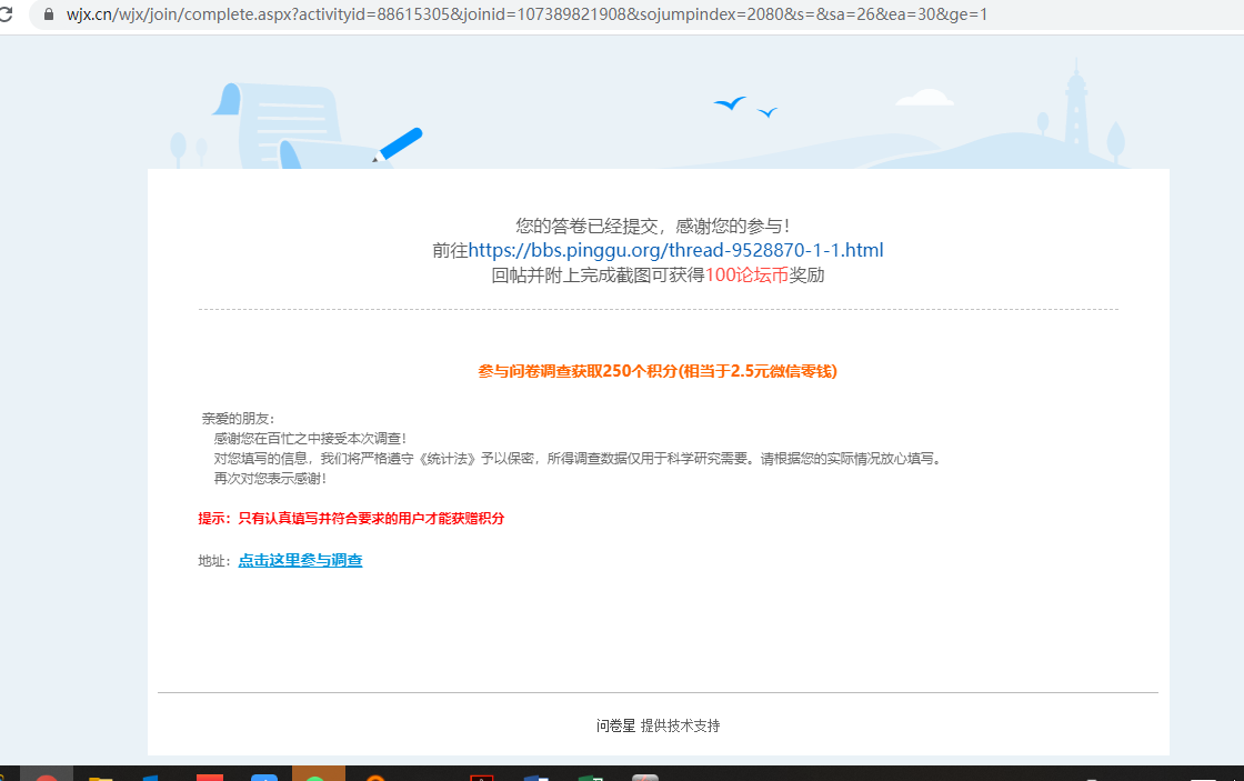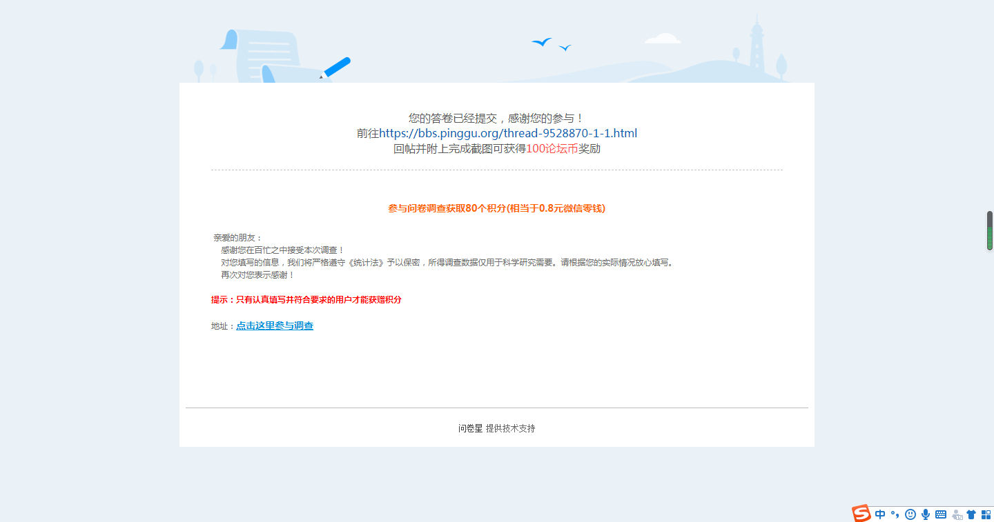 逐梦的太阳 发表于 2020-8-25 17:41 这是一次关于论坛发起的小调查,将耽误您几分钟填写问卷,希望您能够抽出少许时间完成这份问卷调查。我们 ...