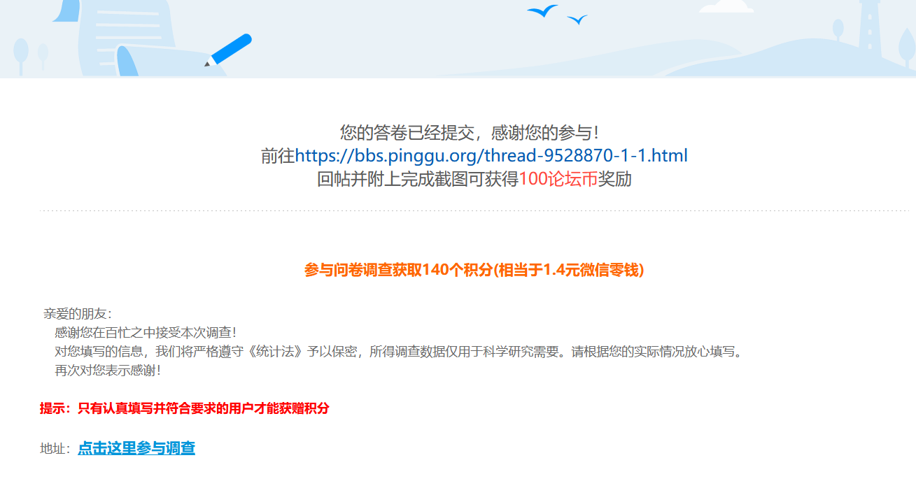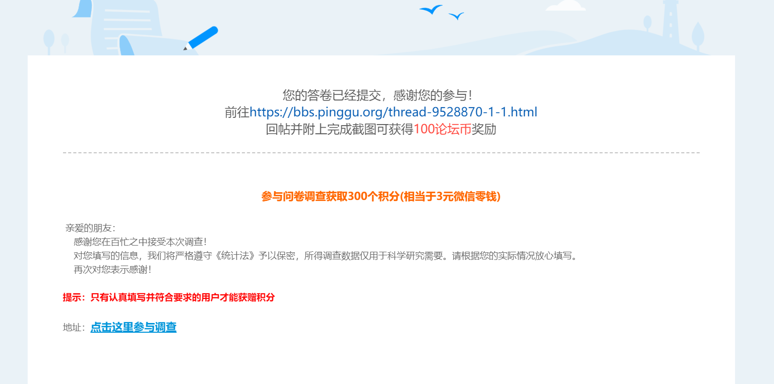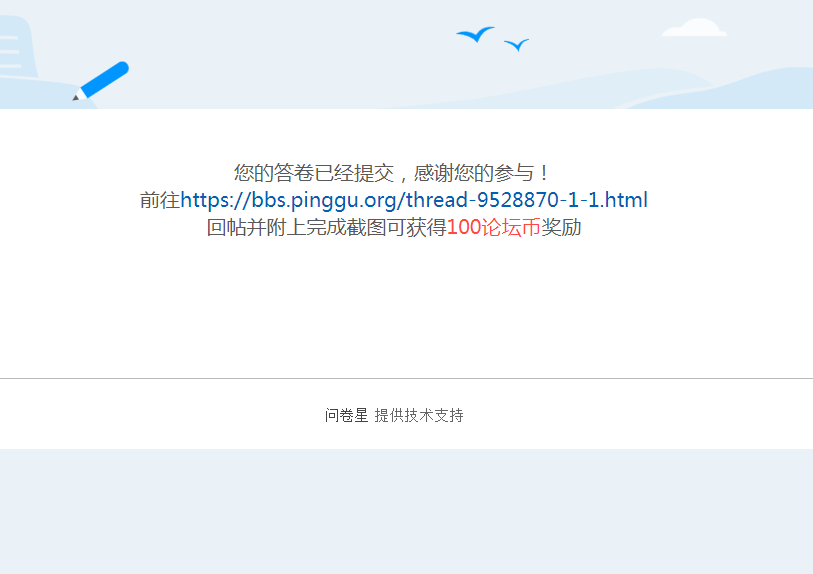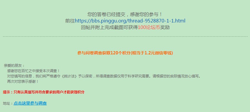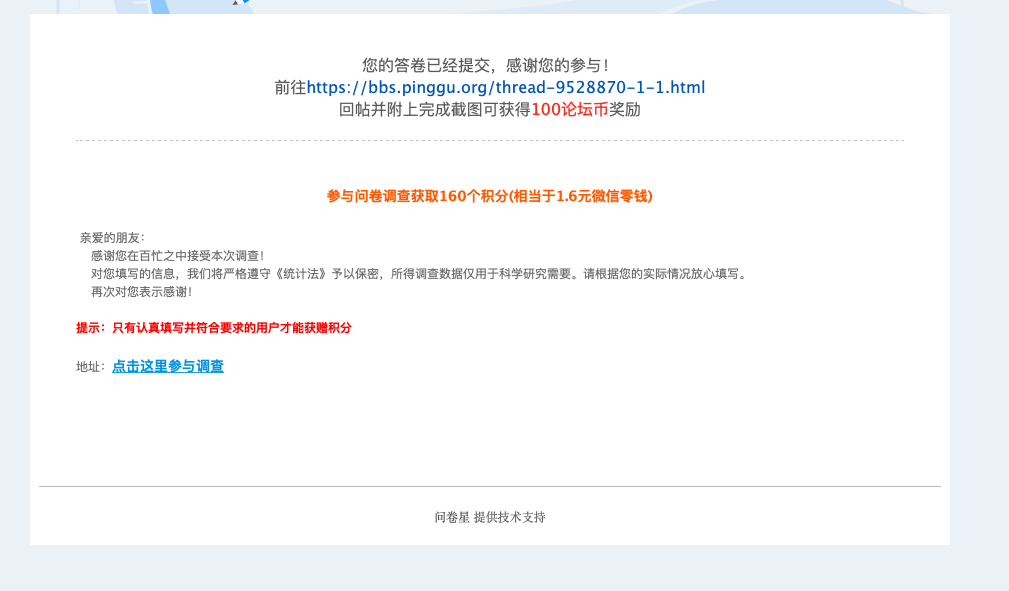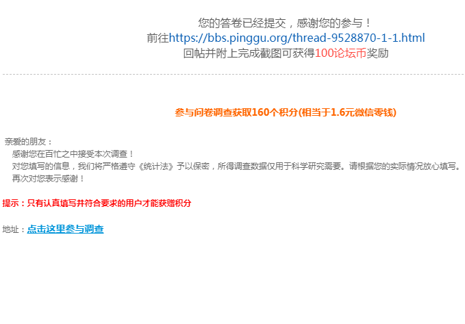 断翅飞翔813 发表于 2020-9-28 14:35 已填问卷,祝论坛越办越好