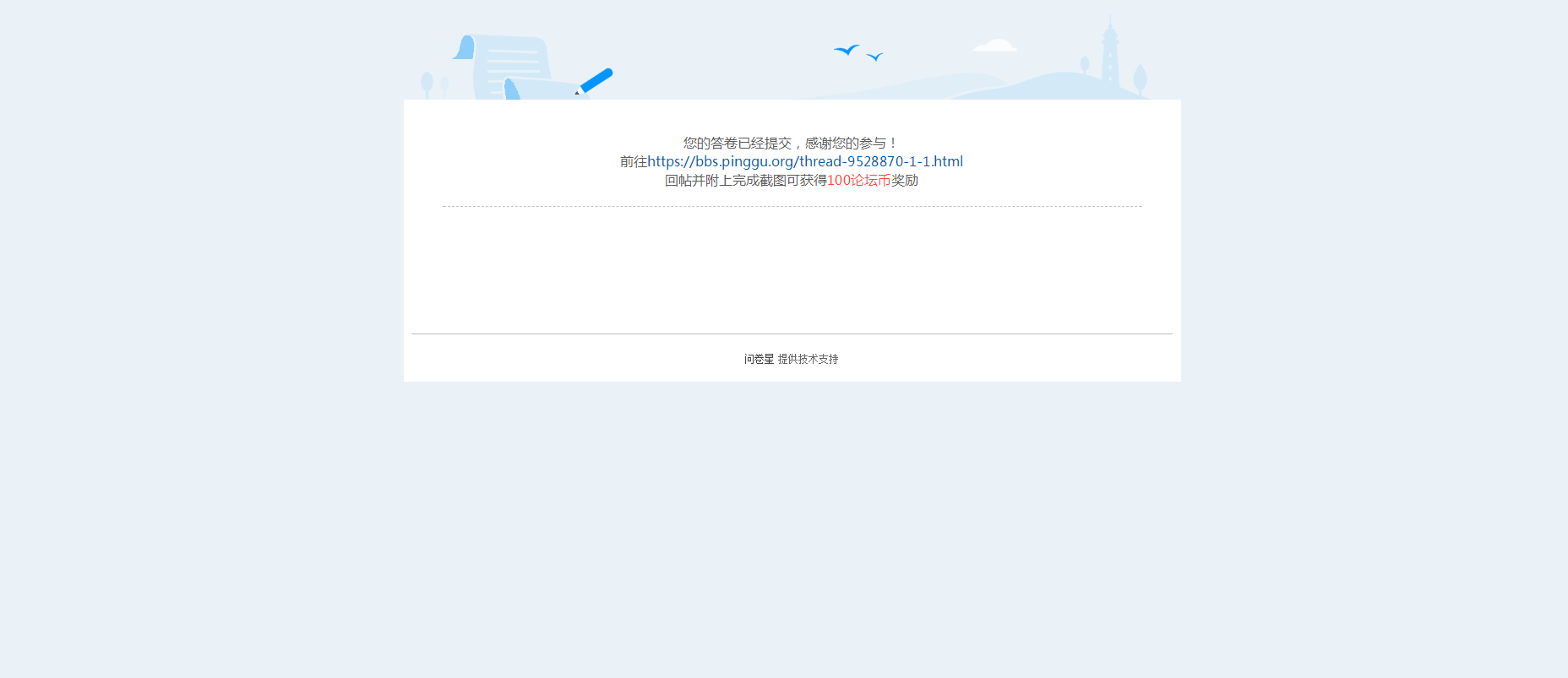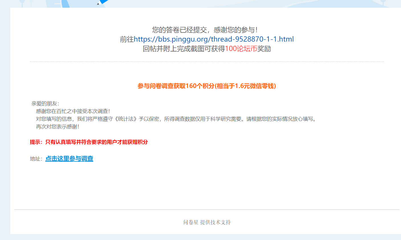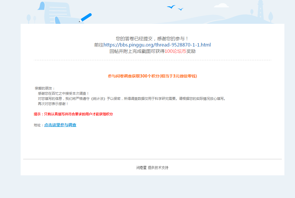 断翅飞翔813 发表于 2020-9-28 14:35 已填问卷,祝论坛越办越好